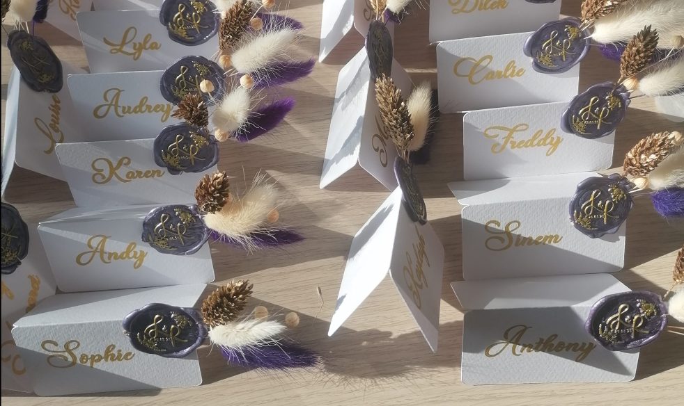 I met L & R at the North London Wedding Fair at Forty Hall in Enfield in autumn 2024 and they had a great vibe from the get go. L & R had already done a lot of their planning when they got in touch and were very happy with the support their venue team was giving them but they needed a few more stationery items for on the day.