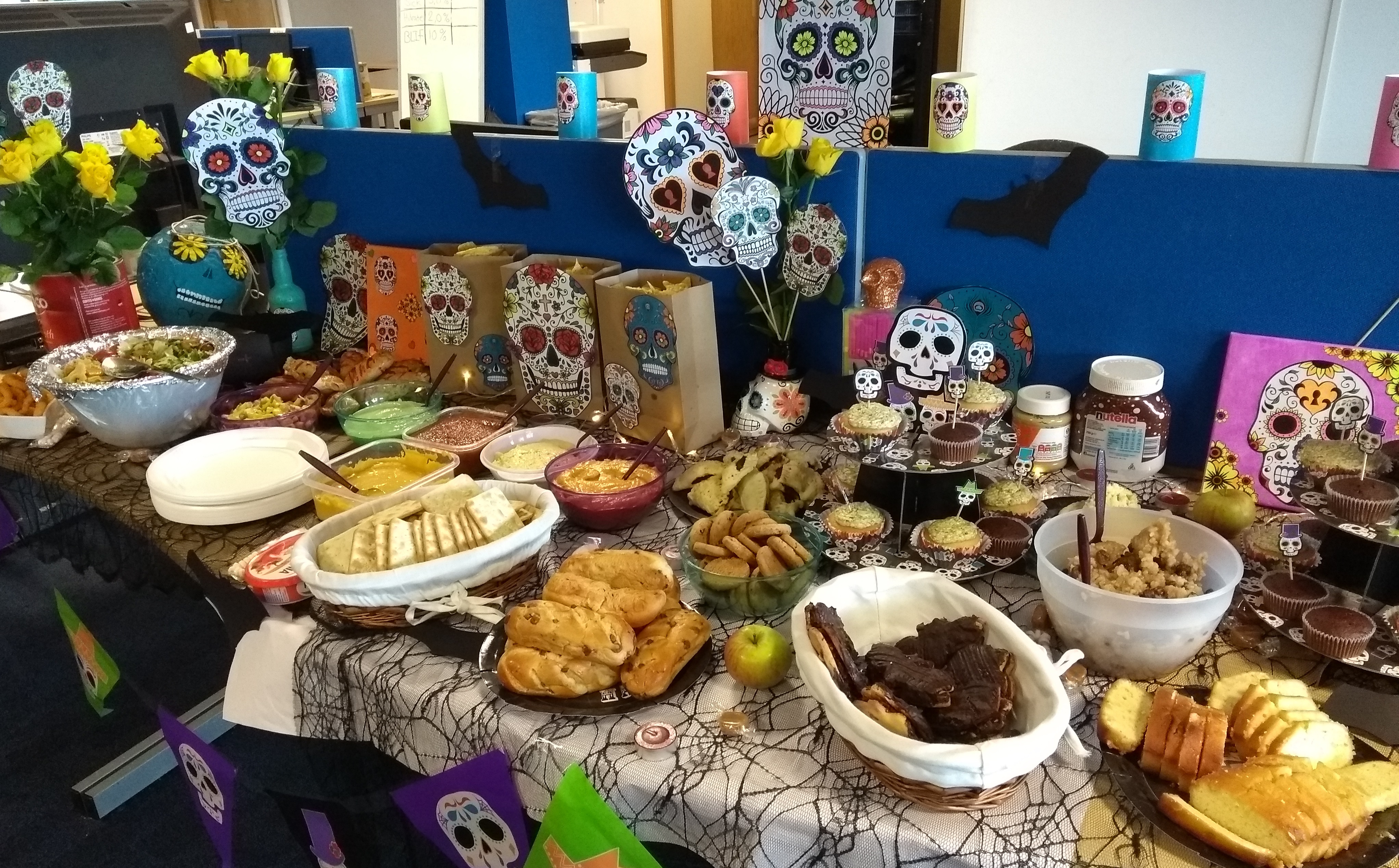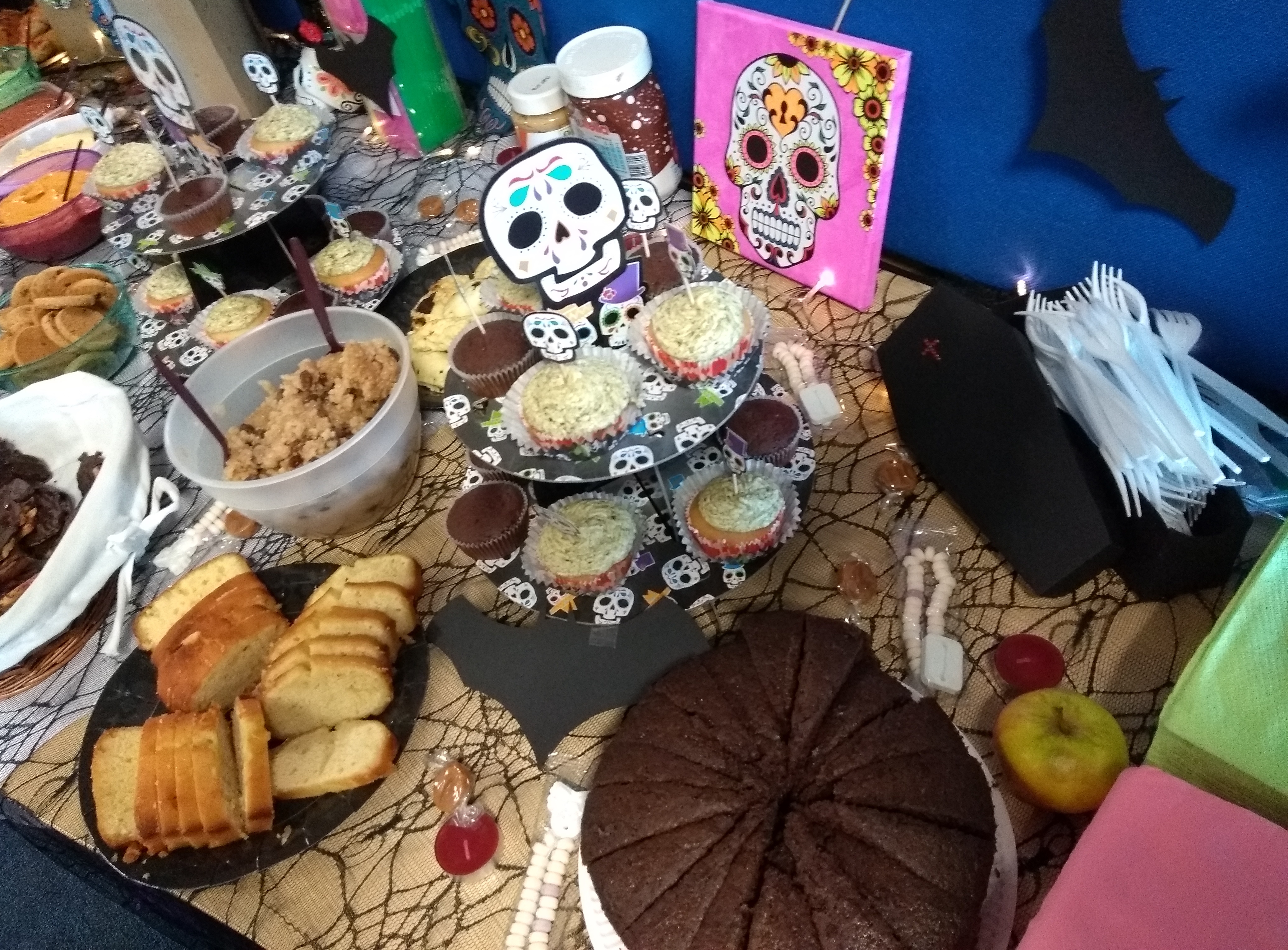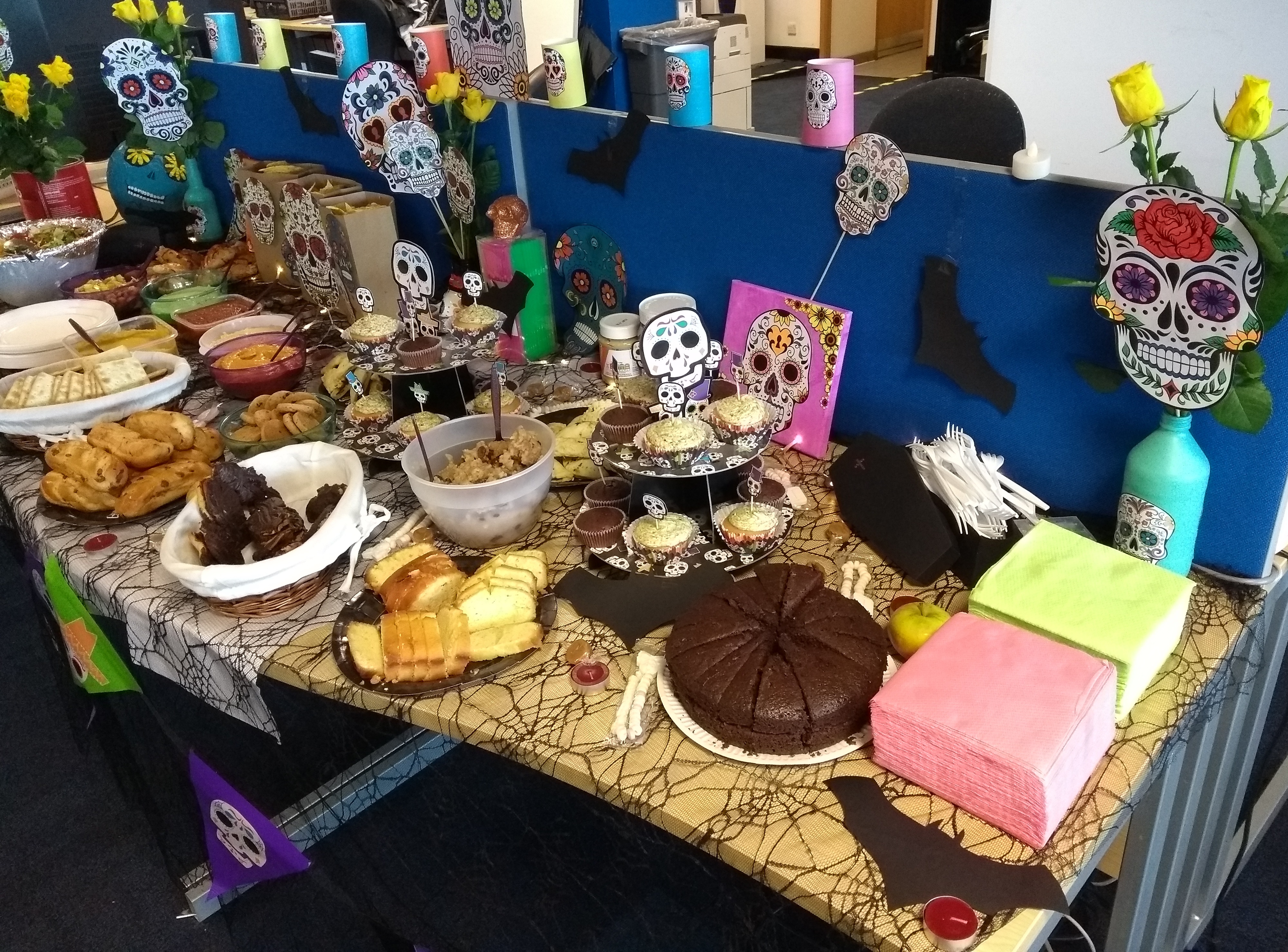 Work had been extremely busy with lots of additional hours so there wasn’t as much time to create decorations for the event as I would have liked, so I concentrated on some stand out elements like the sugar skull decorations, most of them coloured in by hand.
