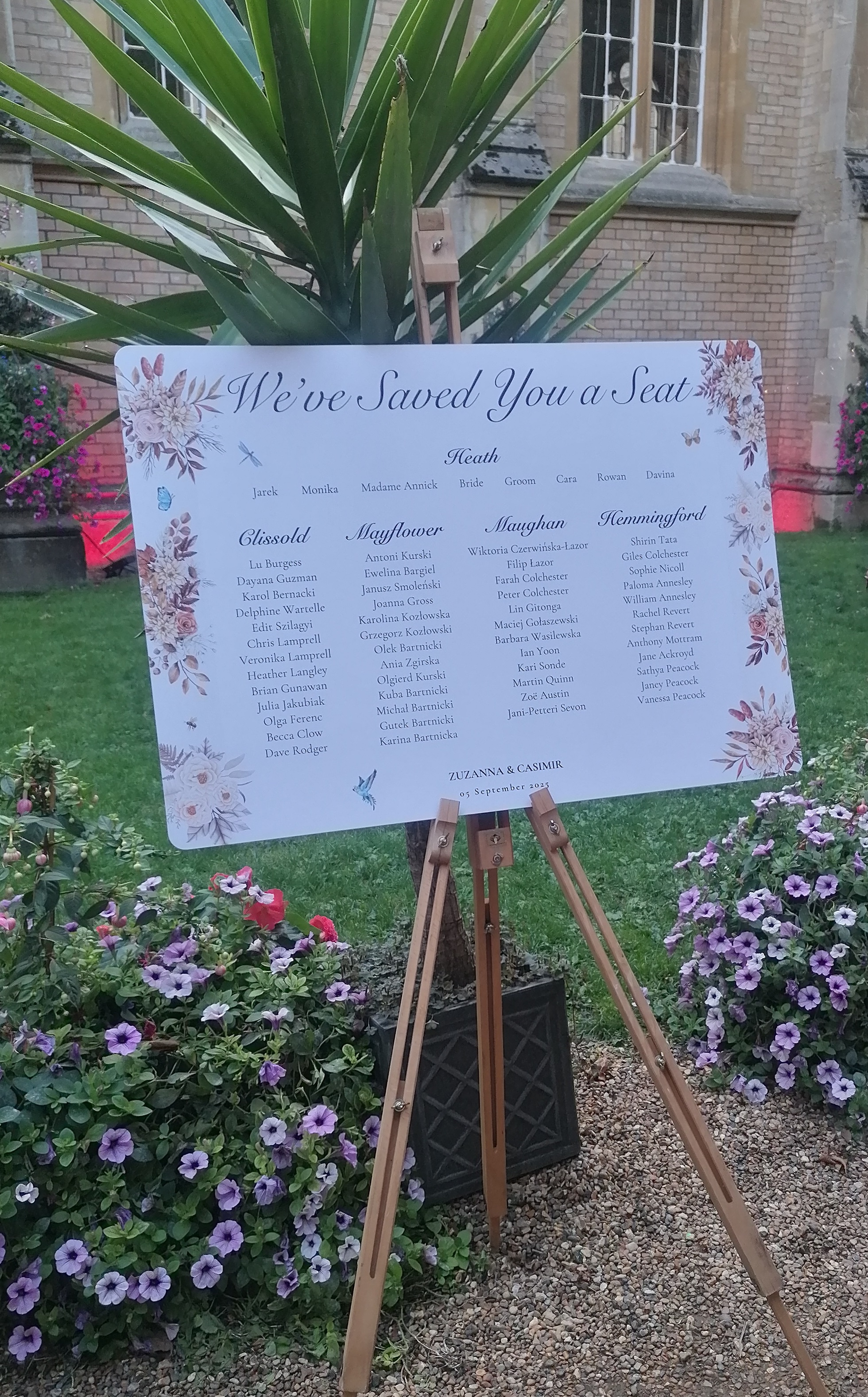 I created the design for their welcome sign in Canva and we based off all other on-the-day stationery on this design. The table names were based on S and C’s favourite London parks and paired with an animal, each of which can be found among the diverse London wildlife.